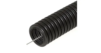 Трубы гофрированные легкой серии с зондом изготавливаются из самозатухающей поливинилхлоридной композиции и используются для механической защиты кабелей и проводов. Имеют повышенную огнестойкость, повышенную прочность и степень защиты IP-55. Использование негорючего материала исключает возможность возгорания, проложенного в гофротрубе кабеля и распространение пламени по трубе к кабелю. Гофрированные трубы очень удобны при прокладке кабеля в пространствах фальшполов и подвесных потолков, где применение коробов и жестких труб может оказаться неудобным из-за ограниченной гибкости.