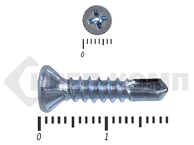 Оцинкованные потайные саморезы со сверлом DIN 7504 P – имеют полную резьбу и сверло на кончике. Потайная головка при вкручивании входит в материал и не выступает на поверхности. Такими саморезами можно закрепить листовые отделочные материалы из пластика, металла, фанеры к металлическим конструкциям. Саморез может высверливать отверстие в углеродистой стали толщиной до 4мм.