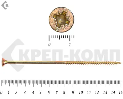 • Pz («Позидрив») – у желтых и белых универсальных саморезов. Размер шлица (№1, №2 или №3) зависит от диаметра головки. Чем больше размер крепежа – тем больше шлиц под крестовую отвертку или биту-насадку для шуруповерта;