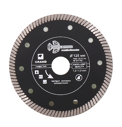 Алмазные диски предназначены для сухой и мокрой обработки прочных строительных и отделочных материалов: бетона, камня, кирпича, мрамора, гранита, черепицы, гипсовых плит, асбеста, шифера, керамики. Диски с алмазным напылением эффективнее абразивного инструмента за счет постоянного диаметра, обеспечивающего стабильную глубину резания, и особой конструкции, позволяющей выполнять работу быстрее и эффективнее. Утолщенная ступица и усиленная основа предотвращают изгибание и деформирование инструмента во время обработки твердых материалов. Промежутки между сегментами и перфорация обеспечивают удаление пыли и шлама из зоны резания.